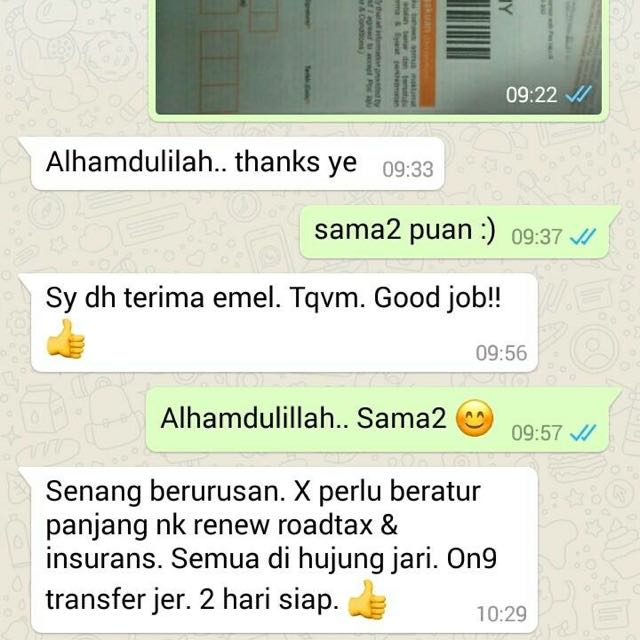 Boleh check terus dlm sistem JPJ setelah siap. 6019-712 2363 Mr Tong mail.